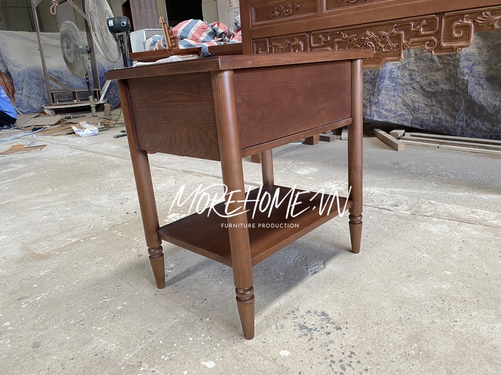 Thi công tab đầu giường gỗ tự nhiên có chân hiện đại đường nét tối giản thẩm mỹ cao cho không gian
