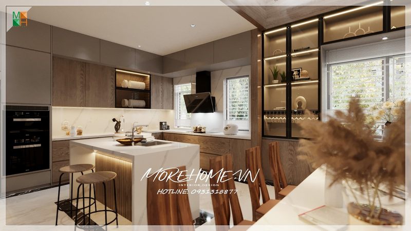 Gia đình của bạn có thể có một không gian ấm cúng bằng cách thiết kế phòng bếp hiện đại với nội thất gỗ công nghiệp đẹp độc đáo.